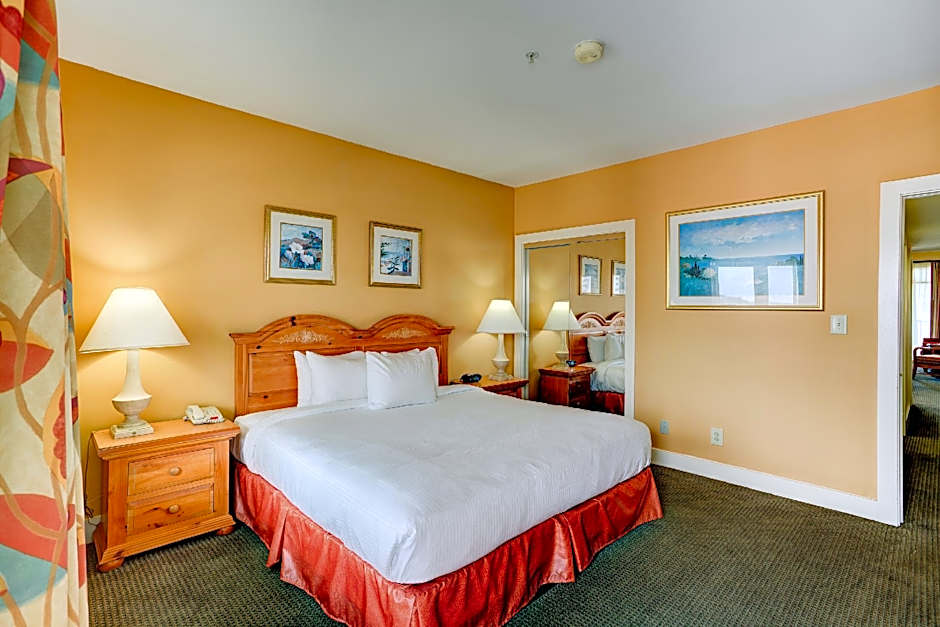 This suite features a spa bath, living room with sofa bed and fireplace, and a fully equipped kitchen.